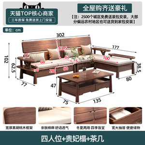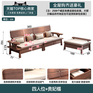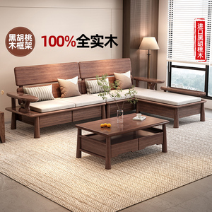 源头工厂新中式全实木沙发组合黑胡桃木简约东冬夏两用储物沙发
