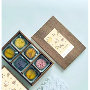 胡桃色6格天地盖空木盒外径约26.4*18*7cm【单格约8x8cm】+中秋蓝色波浪兔子卡片一个
