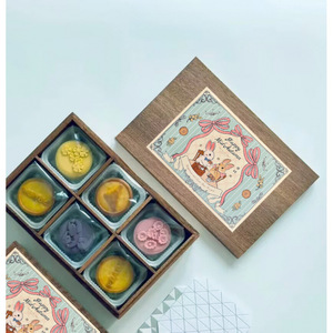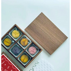 胡桃色6格天地盖空木盒外径约26.4*18*7cm【单格约8x8cm】+中秋手绘米黄色贴纸一个