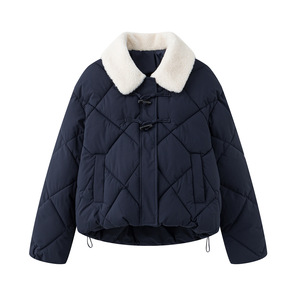 跨境新中式小众棉衣棉服女2025新款冬季棉袄蝴蝶结拼接毛领厚外套