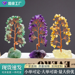 天然水晶树水晶原石底座招财树紫水晶黄水晶发财树水晶生命树摆件