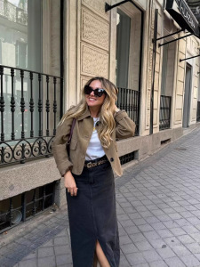 跨境ZA外贸女装2025秋新款时尚翻领大口袋饰绒面皮革夹克女士外套