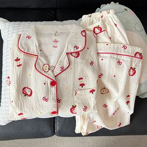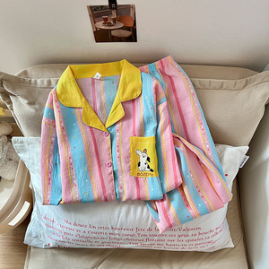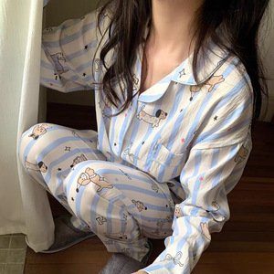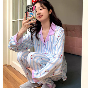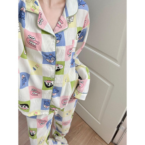 云朵棉韩版睡衣女春秋夏季长袖长裤套装卡通小新翻领薄款家居服女