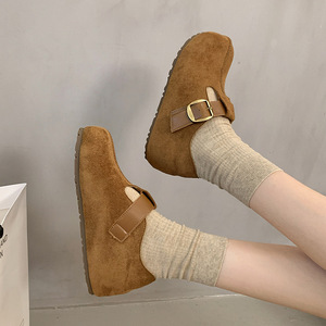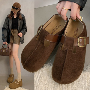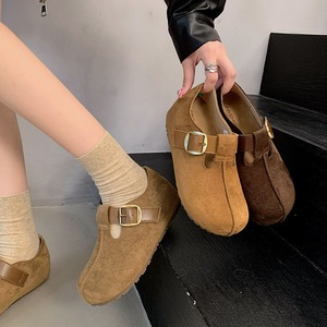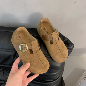 内增高厚底勃肯单鞋女外穿2025懒人一脚蹬皮带扣包头休闲勃肯单鞋