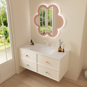 奶油风多巴胺浴室柜组合陶瓷一体盆云朵镜子洗漱台橡木烤漆洗手柜