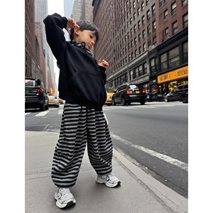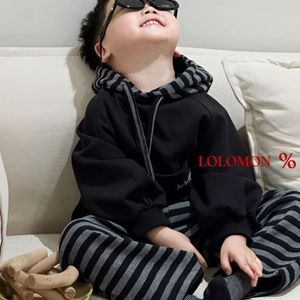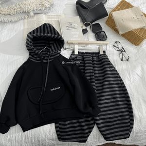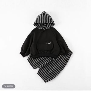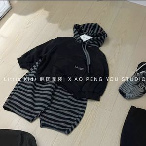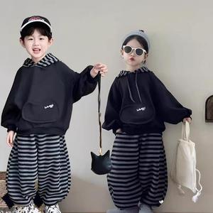 男童卫衣秋季套装2025儿童连帽上衣洋气百搭条纹撞色裤子两件套