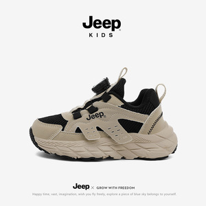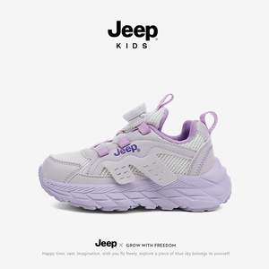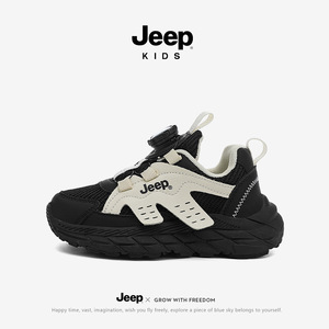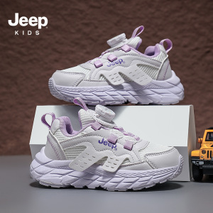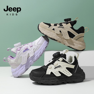 Jeep女童户外运动鞋减震登山旋钮跑步鞋青少年男童篮球鞋秋季网面