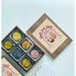 胡桃色6格天地盖空木盒外径约26.4*18*7cm【单格约8x8cm】+米色中秋波浪蝴蝶结兔子贴纸
