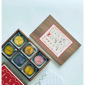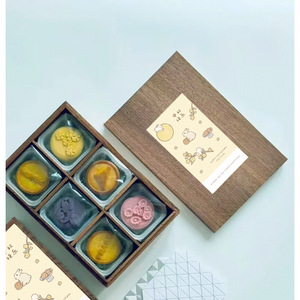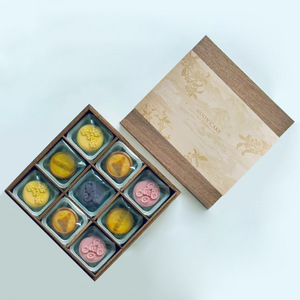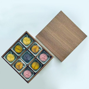 胡桃色9格天地盖空木盒外径约26.5*26.5*7cm+moon cake 封条一个(不含内容物)