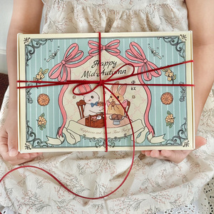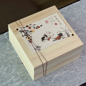 6格天地盖空木盒外径约26.4*18*7cm+随机手绘兔子卡片+2金色圆形贴+金色绳子一个