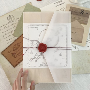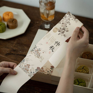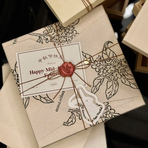 4格天地盖空木盒外径约18*18*6cm +桂花楮皮宣纸+随机中秋快乐卡片+蜡绳+随机红色火漆贴+