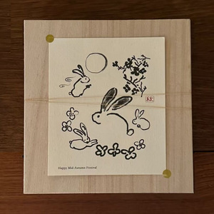 4格天地盖空木盒外径约18*18*6cm +中秋围边+棕色皮绳+别针+兔子吊牌一个 单格约8x8cm