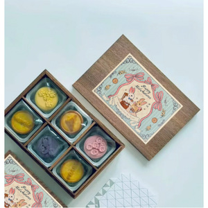 胡桃色6格天地盖空木盒外径约26.4*18*7cm【单格约8x8cm】+中秋手绘米黄色贴纸一个