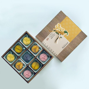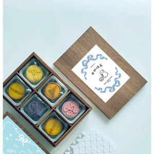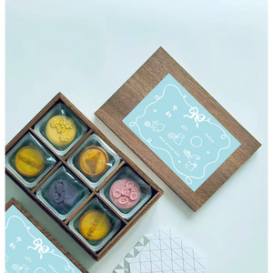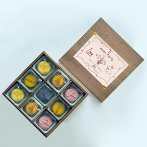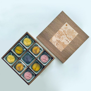 胡桃色9格天地盖空木盒外径约26.5*26.5*7cm+moon cake贴纸一个(不含内容物)