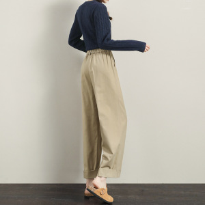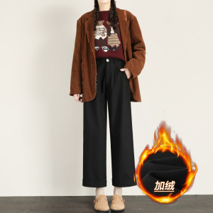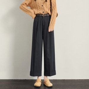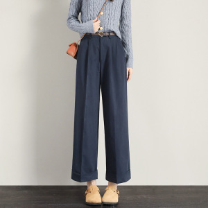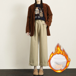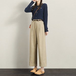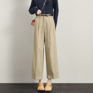 卡其色直筒阔腿裤女春秋季2025年新款小个子高腰九分女装休闲裤子