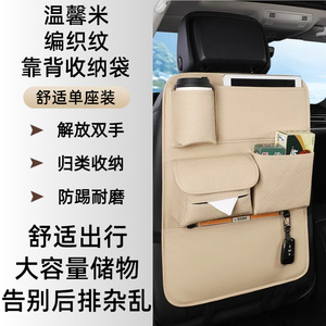 厂家批发汽车靠背收纳袋编织纹归类收纳水杯兜钥匙挂多功能储物袋