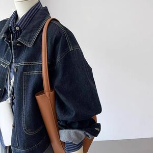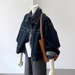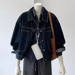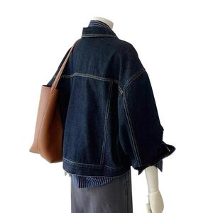 港风复古藏青色胸前大口袋设计叠穿宽松显瘦工装时尚百搭牛仔外套