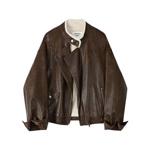 复古美拉德机车皮衣加绒短外套女士2025新款爆款秋冬季高级感夹克