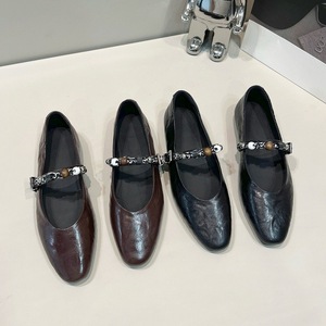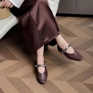 2025秋季新款平底软面真皮一字带玛丽珍单鞋女舒适复古软底小皮鞋