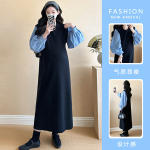 2025新款春秋季秋冬假两件衬衫针织连衣裙宽松显瘦拼接孕妇连衣裙