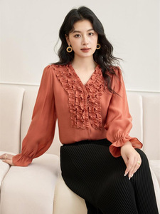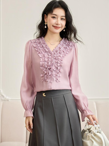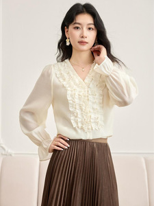 秋季新款设计感小众休闲舒适重工褶皱木耳边长袖衬衫女上衣