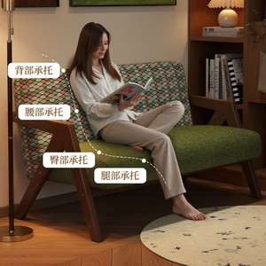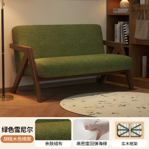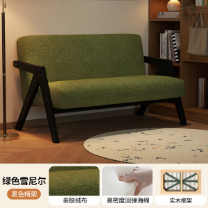 复古实木双人沙发中古风小户型客厅公寓布艺小沙发酒店民宿小空间