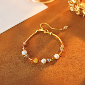 巴洛克天然淡水珍珠韩版轻奢时尚设计百搭手链黄晶石手串批发代发