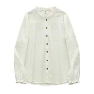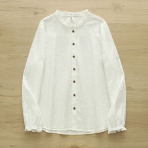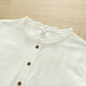 厂家直销 清新甜美木耳花边双层棉纱女式长袖衬衫打底减龄女衬衣