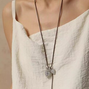 2025新款银色双心毛衣链女简约时尚高级感颈链小众高级感长款项链