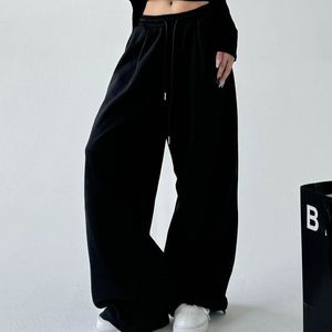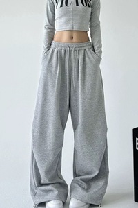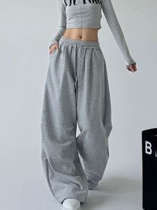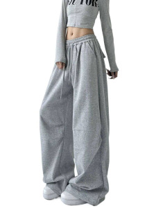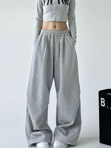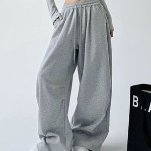 美式灰色运动裤女春秋新款高腰直筒宽松休闲卫裤工装阔腿裤子女潮