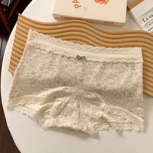 女士平角裤10A全棉抑菌加长裆蕾丝内裤女打底纯欲风中腰大码批发