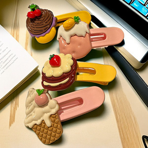 多巴胺卡通草莓冰淇淋花朵发夹女刘海碎发侧边夹子鸭嘴夹网红发饰