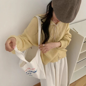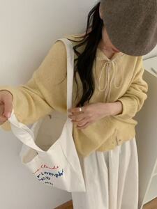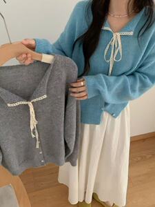 韩系系带蕾丝翻领毛衣小外套女秋冬新款纯色百搭软糯针织开衫