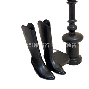 高端品质2025秋冬真皮金属方头复古粗高跟高筒骑士靴不过膝长靴女