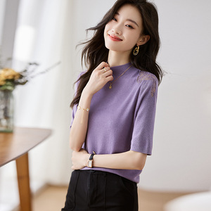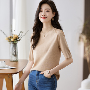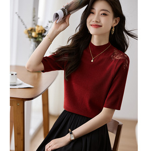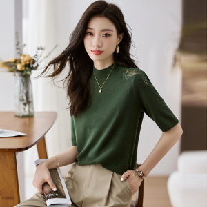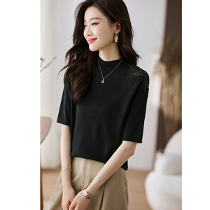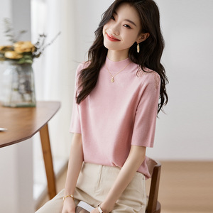 秋装新款含羊毛半高领套头针织衫内搭2025年秋装镂空毛衣女薄上衣