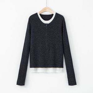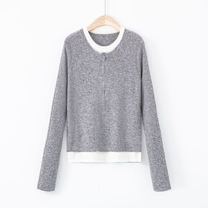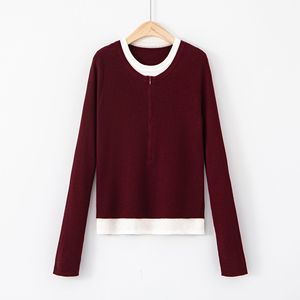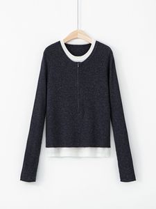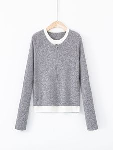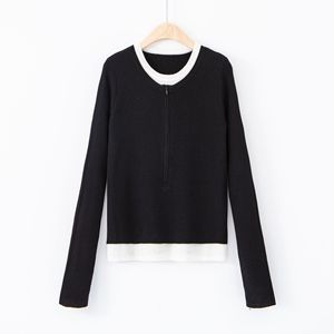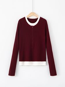博伟2025秋冬款拼色圆领小个子针织开衫女士拉链毛衣外套短款外搭