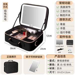 耐脏防水化妆包大容量LED镜子化妆盒手提旅行便携化妆品收纳箱
