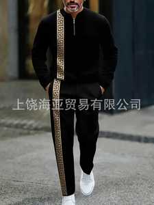 2025跨境外贸新品欧美热卖休闲潮流爆款男装两件套3d数码印花