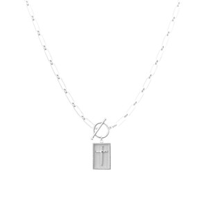 跨境欧美爆款简约金色回形针链条项链十字方块吊坠OT扣十字架项链