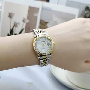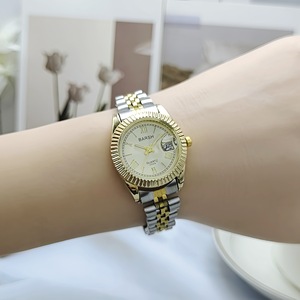 经典复古日历女士手表爆款外贸跨境金色齿轮边精致怀旧钢带腕表女