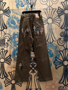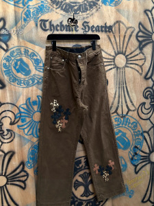 跨境美式顶级版CH克罗情侣十字架拼皮镀银扣直筒水洗牛仔裤男女款
