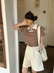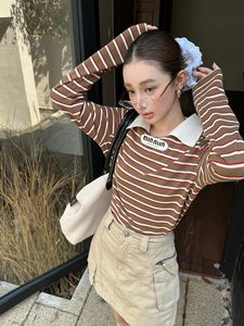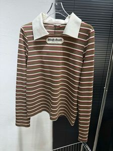 【深圳南油】MIU系设计感条纹长袖polo套头设计洋气经典新款早秋