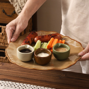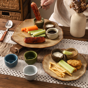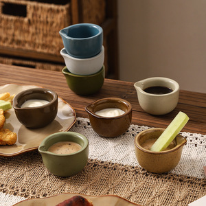 复古窑变个性小奶壶餐厅酒店陶瓷小味碟火锅蘸料碟调味酱料小奶罐