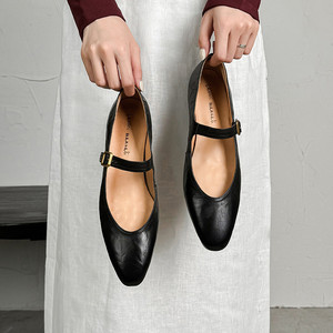 羊皮玛丽珍鞋女低跟单鞋秋新款真皮圆头擦色做旧一字扣浅口单鞋女