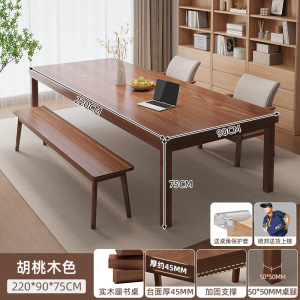 【实木腿+加厚4.5cm桌面】胡桃色220*90*75cm单桌(送护角*4)