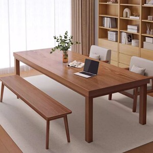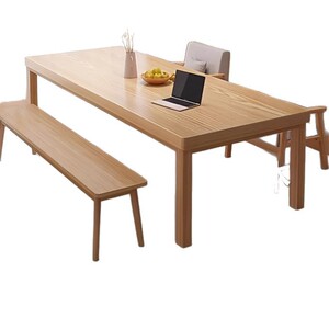 【桌椅组合-单桌+长条凳+实木椅*2把】原木色200*80cm