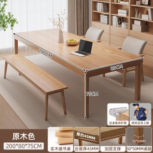 【实木腿+加厚4.5cm桌面】原木色220*90*75cm单桌(送护角*4)