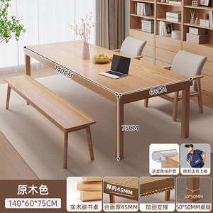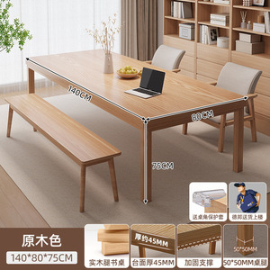 【实木腿+加厚4.5cm桌面】原木色140*60*75cm单桌(送护角*4)