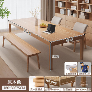 【实木腿+加厚4.5cm桌面】原木色180*80*75cm单桌(送护角*4)