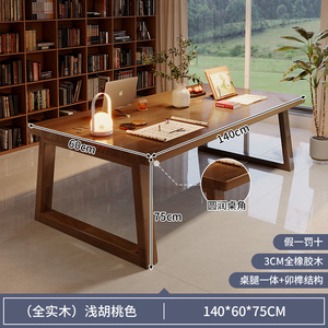 【100%全橡胶木材质】140cm浅胡桃色—3cm加厚桌面